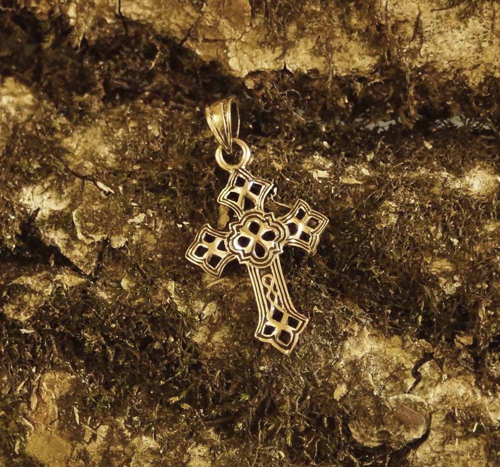 Ein filigranes kleines Kreuz aus Bronze.