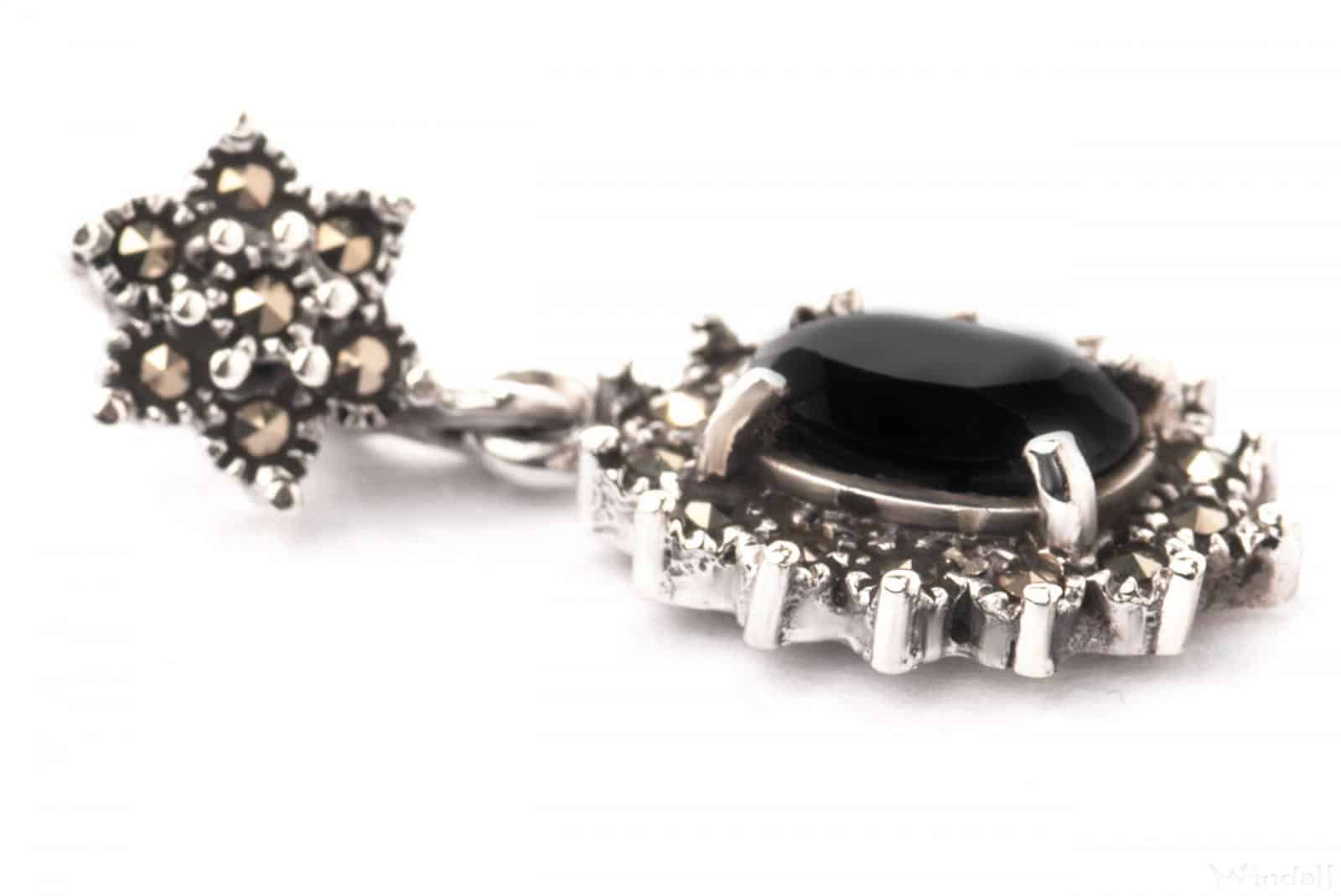 Veredelt mit einem einem schwarzen Zirkonia und funkelnden Markasitsteinchen.