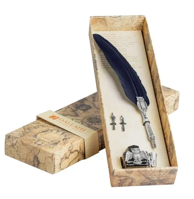 Die Kalligrafiefeder verfügt über ein internes Tintenreservoir, das längeres Schreiben ohne häufiges Eintauchen der Tinte ermöglicht. Dank der Eulenfigur liegt die Feder angenehm schwer in der Hand und eignet sich ideal zum langsamen schreiben verschiedener Kalligrafietechniken.