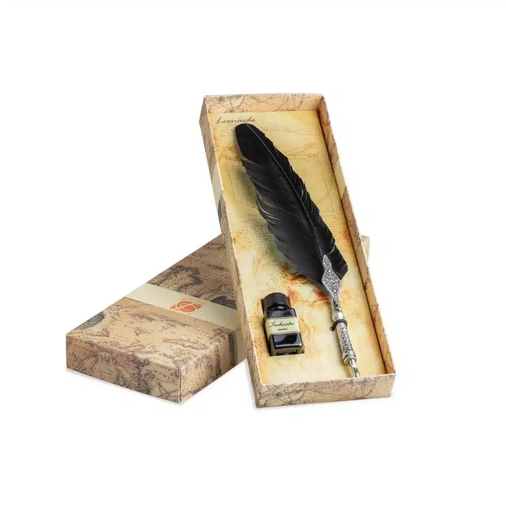 Die Kalligrafiefeder verfügt über ein internes Tintenreservoir, das längeres Schreiben ohne häufiges Eintauchen der Tinte ermöglicht. Diese Feder mit viktorianischem Emblem liegt angenehm in der Hand und eignet sich ideal zum schreiben verschiedener Kalligrafietechniken.