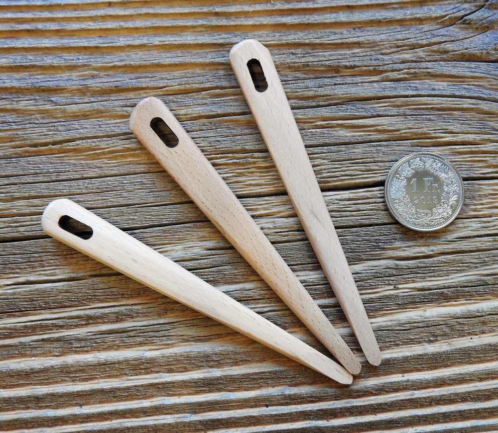 Robuste Stricknadel / Nähnadel fürs Nadelbinden (Nålebinding) aus Buchenholz.