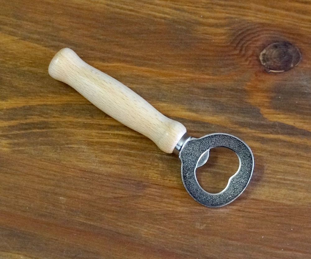 Ein einfacher und preiswerter Flaschenöffner mit Holzgriff.