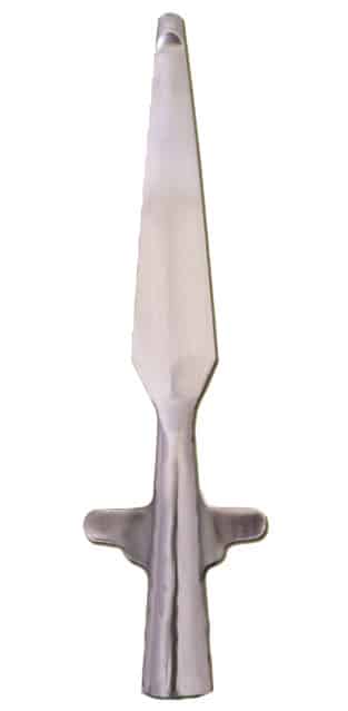 Diese Art Lanzenspitzen sind von den meisten Reenactmentgruppen wegen ihrer stumpfen, verdickten und abgerundeten Spitze auf dem Schlachtfeld (z.B. Hastings) zugelassen. Die Schaftaufnahme (Tülle) ist sauber geschmiedet und verschlossen und mit einem Loch zur Fixierung des Schaftes versehen.