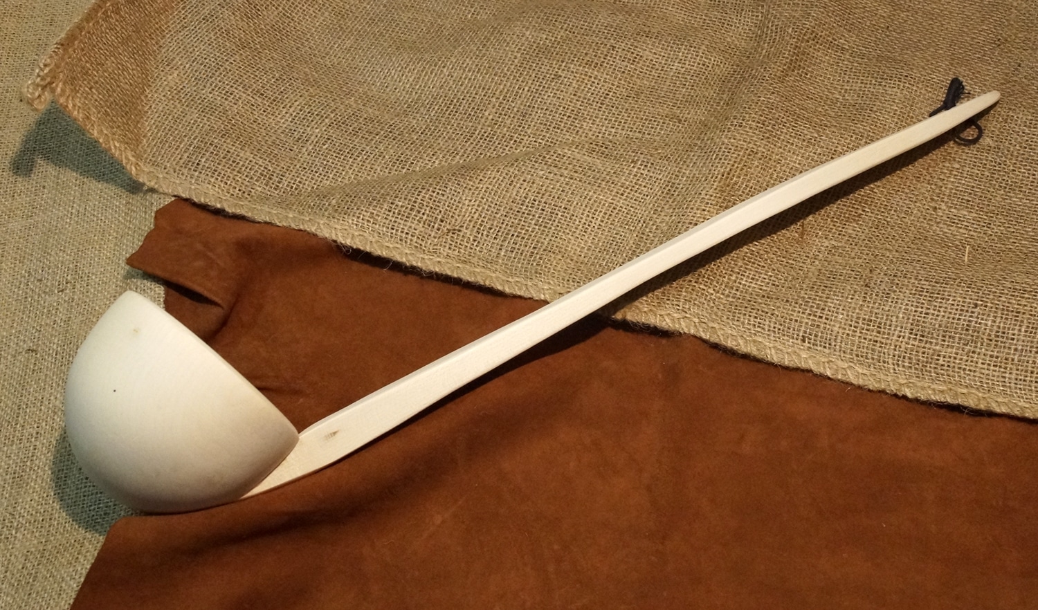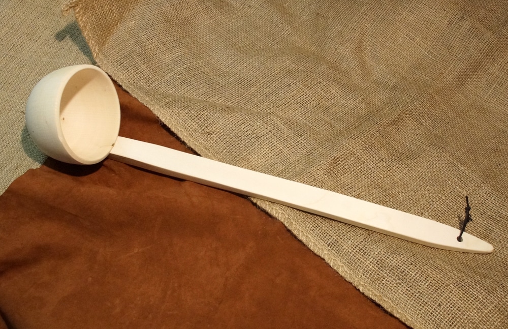 Grosse Schöpfkelle mit abgewinkeltem Kopf. Gut geeignet für tiefe Töpfe oder zum Wasserschöpfen.