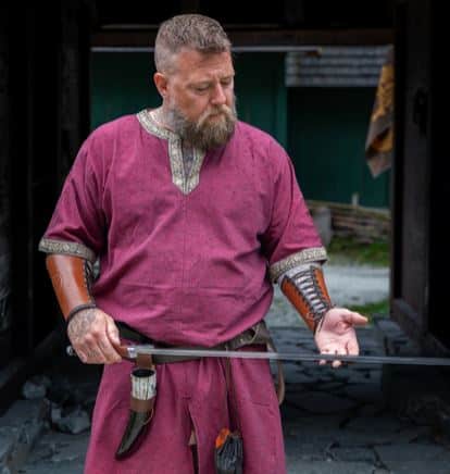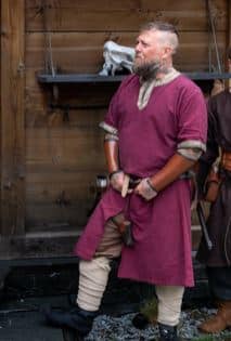 Auch wenn sie in vielen Webshops so angepriesen wird, es ist keine Wikingertunika. Sie ist für den durchschnittlich grossen Mann zu lang und die Borte passt auch nicht. Aber wer nicht so auf das historische schaut – sie passt auch gut zu einer Axt 😉