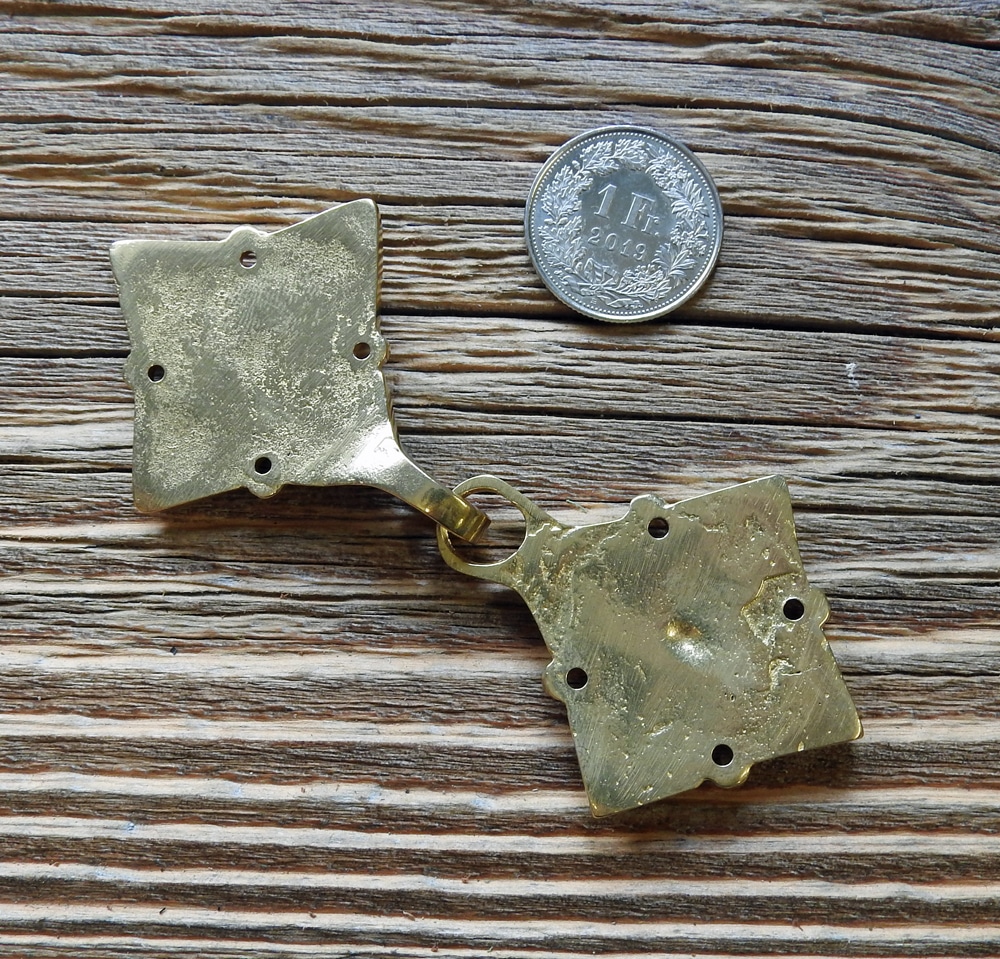 Diese 2-teilige Gewandschliesse hat jeweils vier Löcher , um sie einfach an der Gewandung annähen zu können.