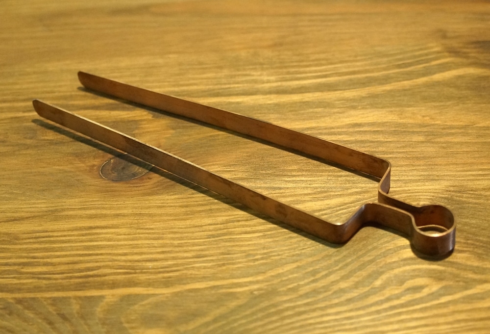 Diese einfache aber dennnoch massive und robuste Zange ist ein praktisches Hilfsmittel um Räucherkohle anzuzünden.