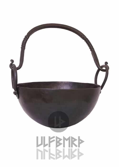 Der Topf ist mit Schmiederuss geschwärzt und eingeölt. Wir empfehlen vor Gebrauch eine gründliche Reinigung mit Seifenlauge und Stahlwolle bzw. ein Abbrennen der Ölreste über offenem Feuer.