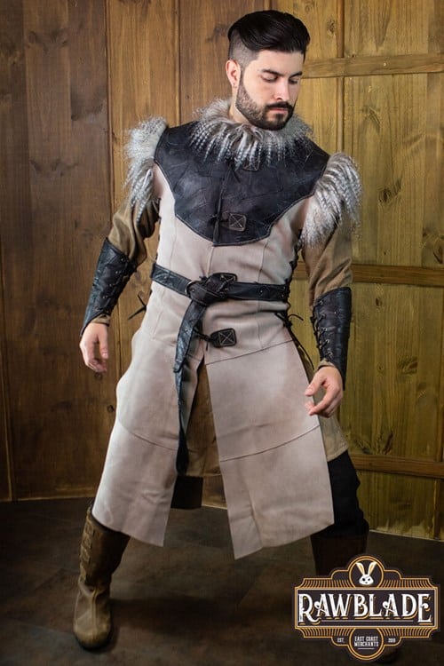 Dieses Wams aus geschmeidigem Wildleder mit Fellkragen bestückt, wurde sehr gut verarbeitet und auf den männlichen Körperbau abgestimmt.