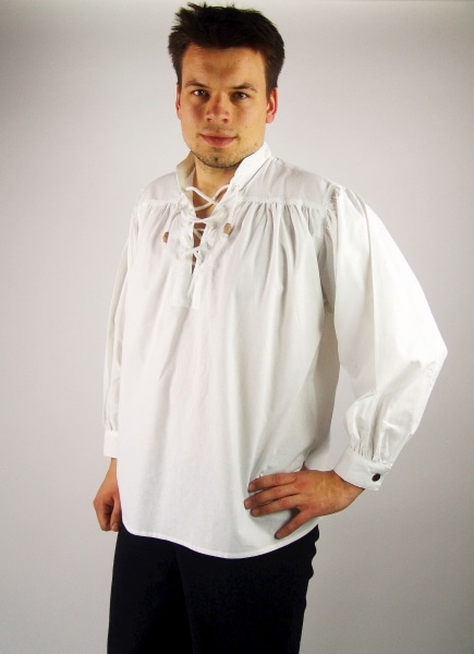 Hinweis: Bei diesem Hemd sind die Arme eher kurz geschnitten. Sie sollten aber eher etwas länger sein, da sie dann bauschiger sind, was dem Stil des Hemdes besser gerecht wird. Daher sollten sie bei der Wahl ihrer Grösse, hauptsächlich die Armlänge beachten!