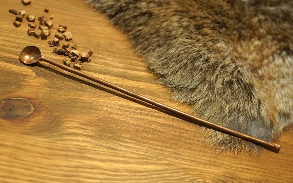 Dieses massive Löffelchen aus Kupfer verwendet man zum Portionieren von Räucherwerk.
