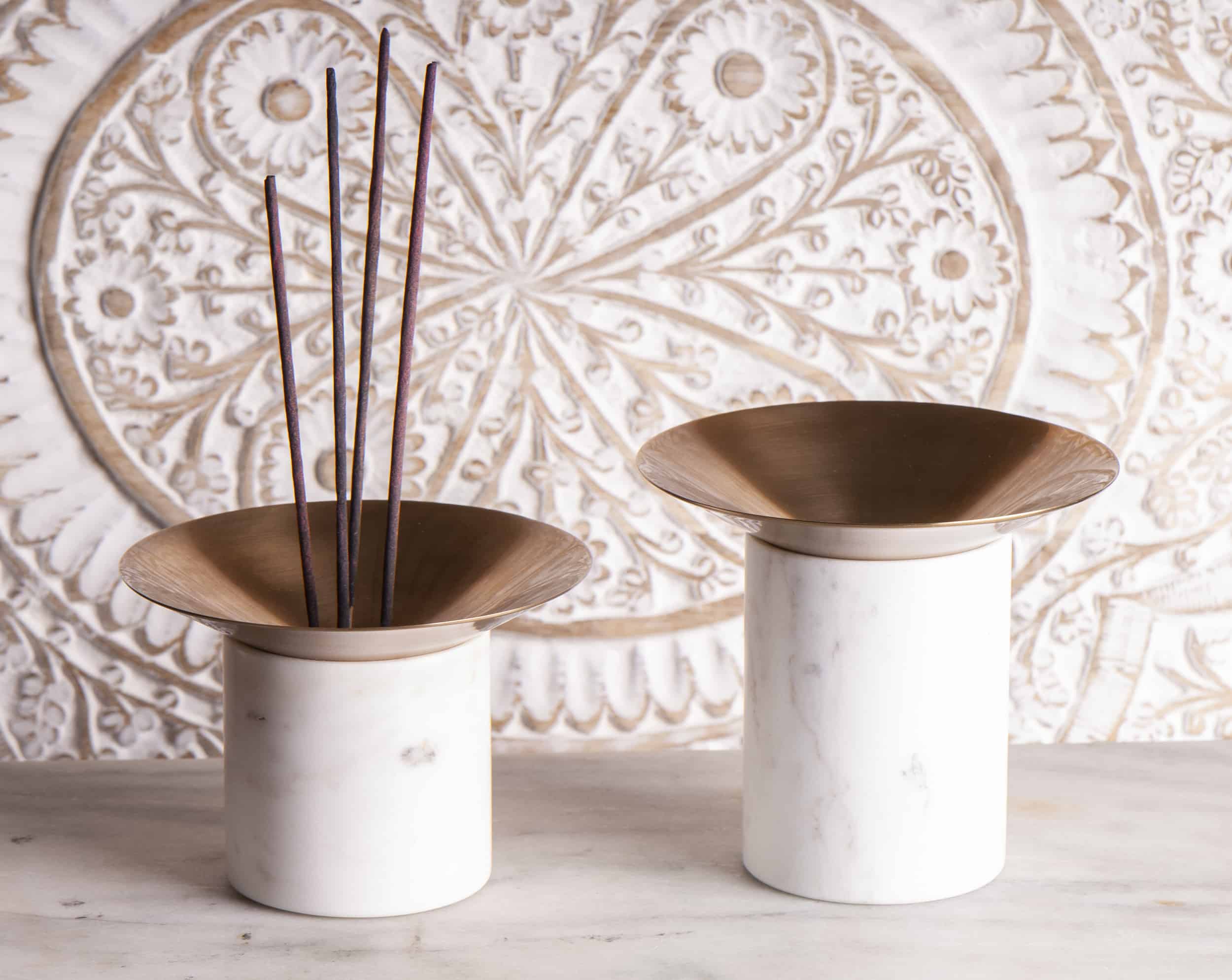 Marmorgefäss mit Kupfertrichter für Räucherstäbchen