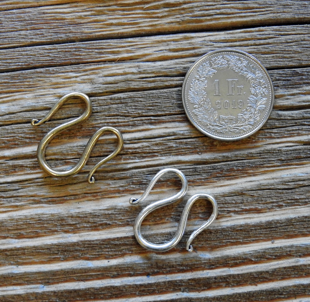 Dieser Kettenhaken aus Bronze ist ideal um Anhänger an einer Wikingerkette zu befestigen, oder für ein ganzes Kettengehänge welches zwischen zwei Fibeln getragen wird.