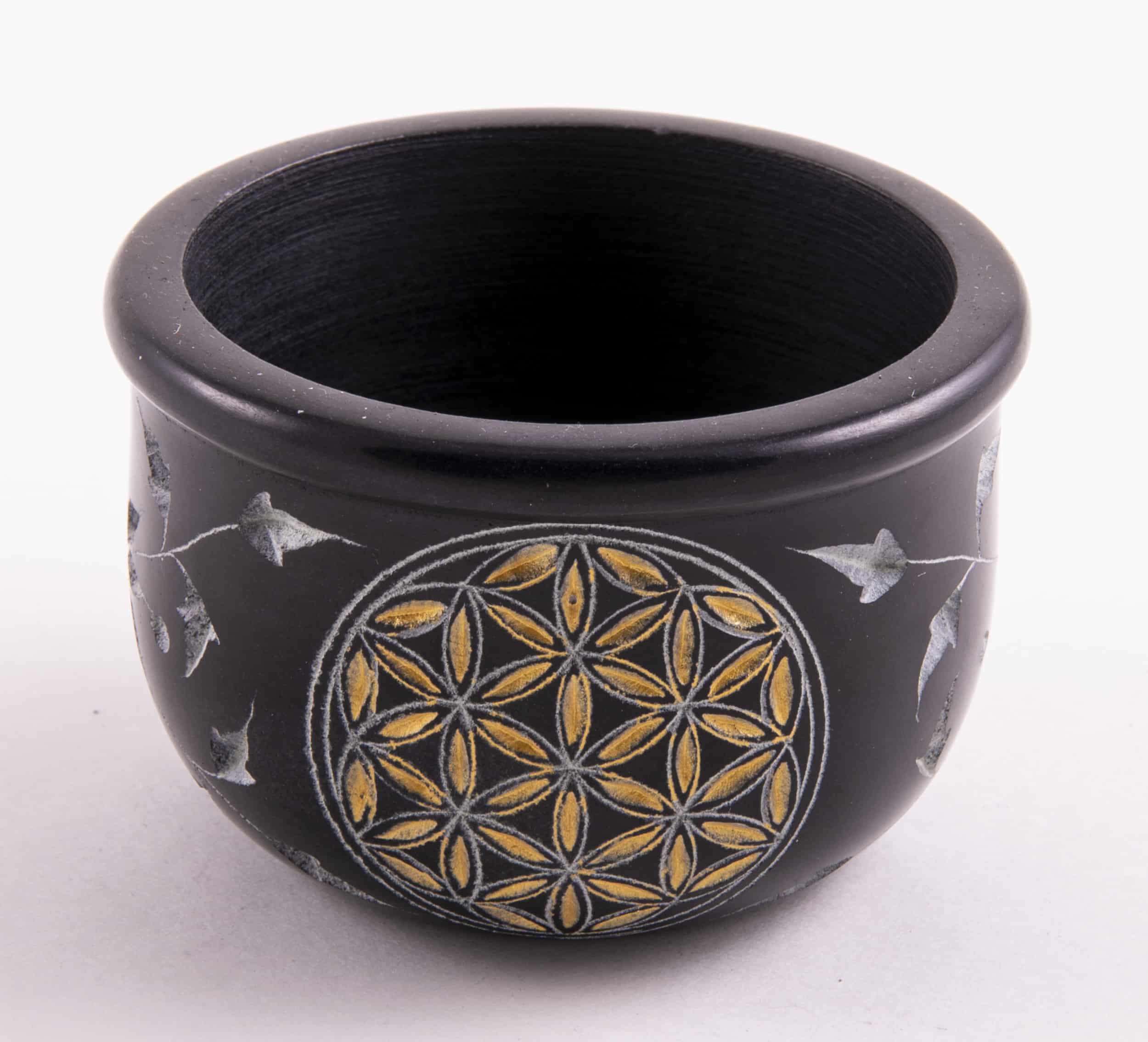 Räucherschale schwarz mit Blume des Lebens