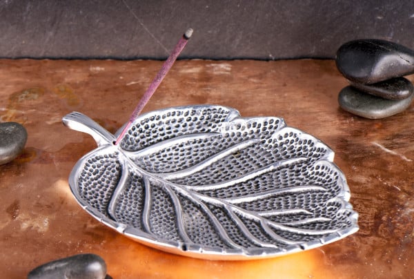 Eleganter Räucherstäbchenhalter mit Blattrelief.