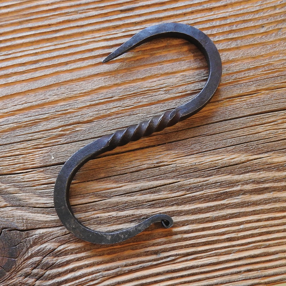 Handgeschmiedeter grosser S-Haken aus Eisen.