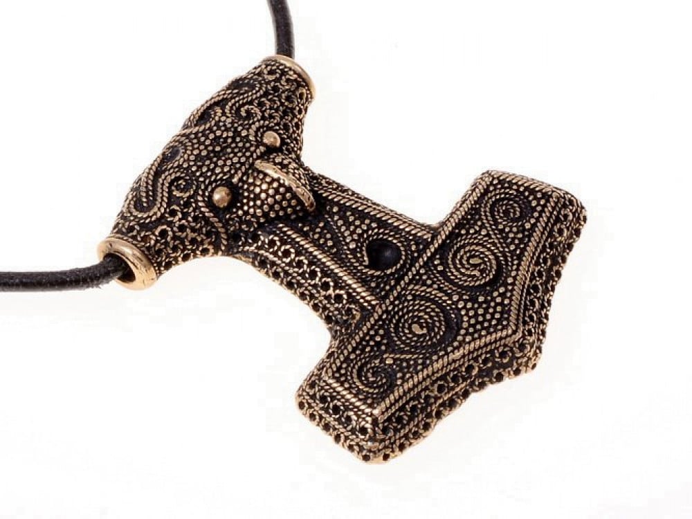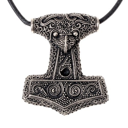 Der detailreich in filigraner Granulationstechnik gearbeitete Thorshammer ist nach einem schwedischen Mjölnir gearbeitet, der nach dem Fundort auch Schonenhammer genannt wird und auf die späte Wikingerzeit datiert ist.