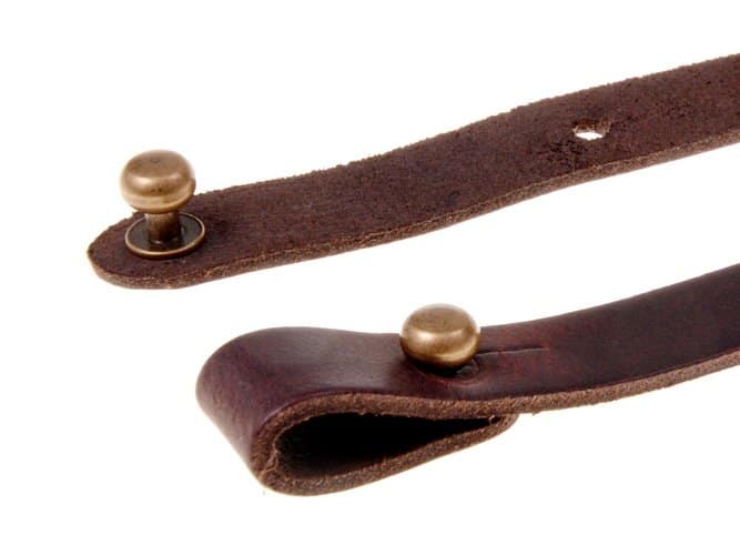 Der Schulterriemen besteht aus zwei miteinander vernieteten Teilen und wird aus hochwertigem Rindsleder in 2 – 2,5 mm Stärke gefertigt.