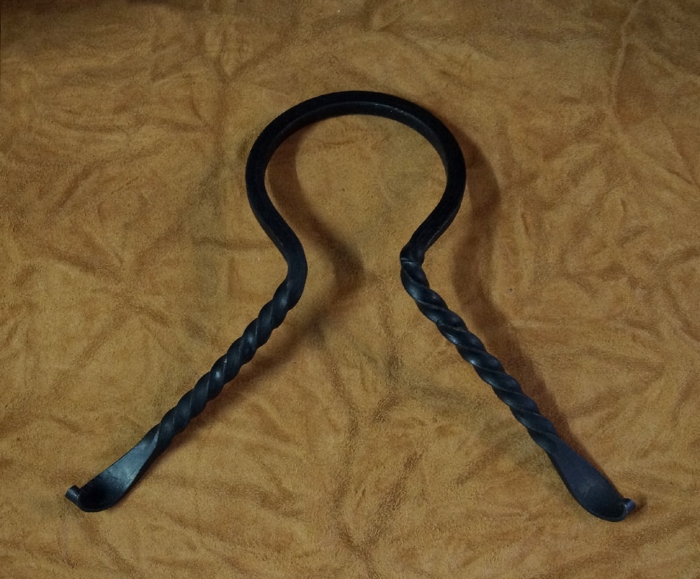 Die Beine sind kunstvoll tordiert und haben elegant eingerollte Füsse. Die Hornschlaufe lässt sich mit wenig Aufwand auf- bzw. zubiegen, wodurch der Innenradius von 5 – 7 cm variabel und damit für Hörner von ca. 2dl – 4dl geeignet ist.