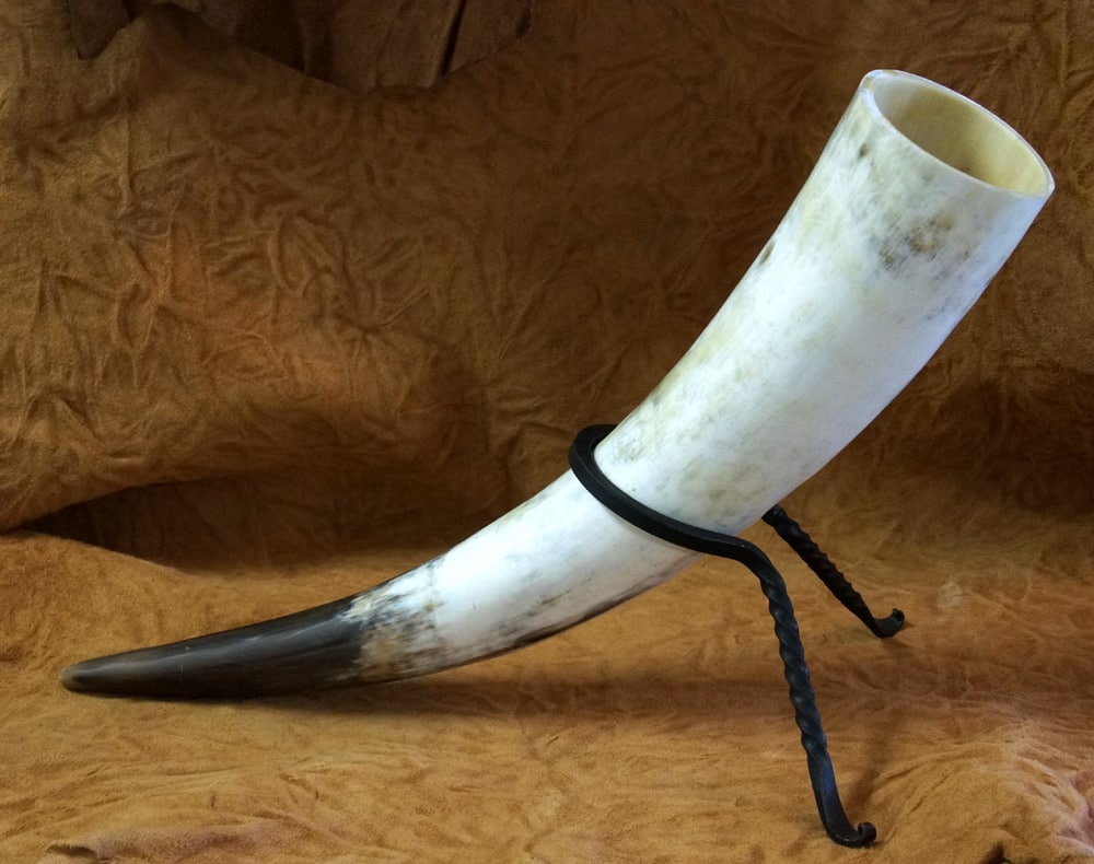 Dieser praktische Trinkhornständer kann überall hin mitgenommen werden! Einfach in den Gürtel stecken.
