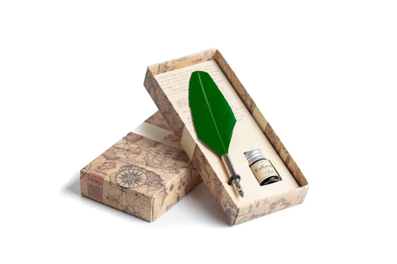 Dieses Schreibset enthält einen kompakten Kalligrafie-Federhalter und eine 5ml Flasche schwarzer Kalligrafietinte.