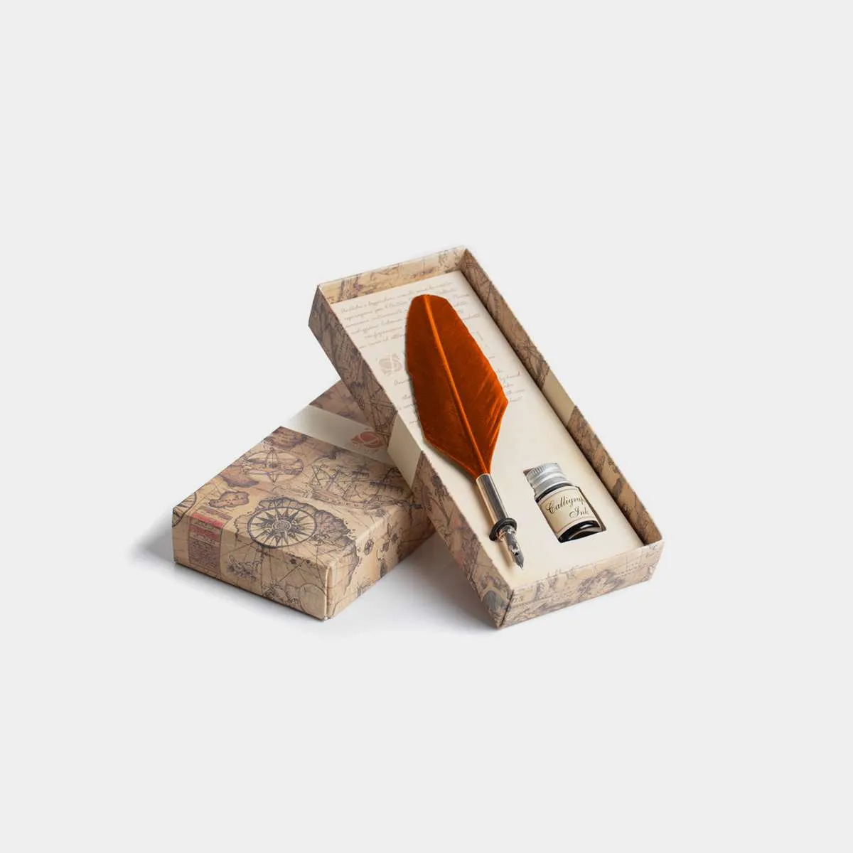 Truthahnkiel mit Metallfeder und Tinte – Spitz, orange
