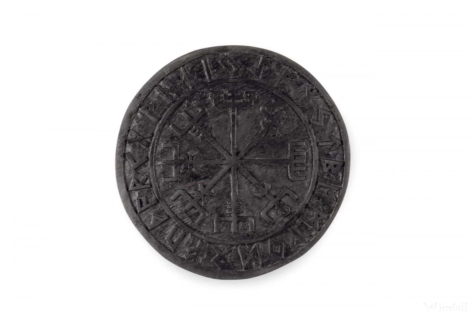 Keltische Wanddekoration von Hand geschnitzt aus Soarholz. Der Wikinger Kompass in der Mitte wird mit den 24 Futhark-Runen, dem Runen-Alphabet umrahmt. Eine sehr schöne Arbeit.