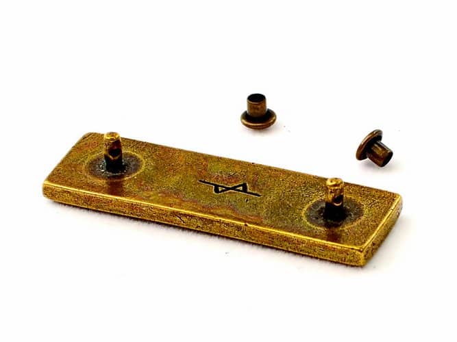 Auf der Rückseite befinden sich zwei Stifte von 3 mm Länge, auf die zur Befestigung einfach kleine, mitgelieferte Kappen aufgesetzt und mit ein paar leichten Hammerschlägen fxiert werden.